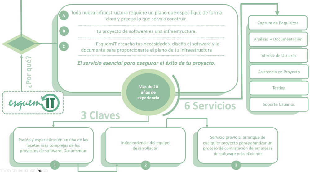 Esquemit escucha tus necesidades, diseña la solución y documenta el software que más se adapte a tu negocio. Un servicio esencial para asegurar el éxito de tu proyecto.